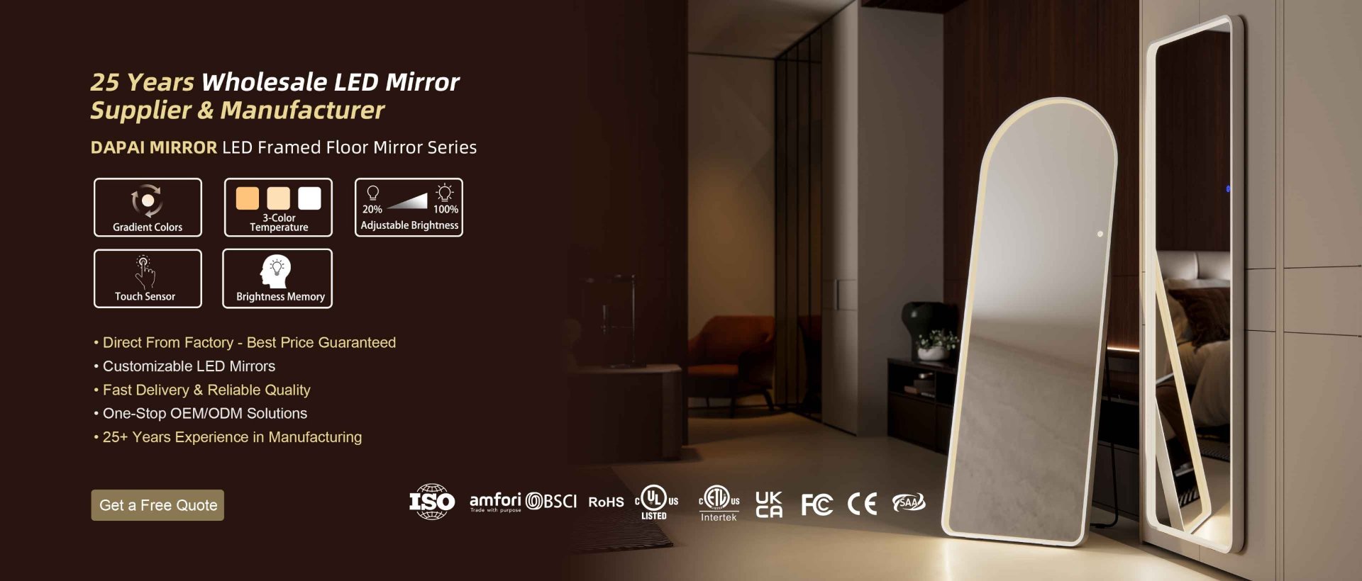 Looking for stylish and high-quality floor and wall mirrors? DAPAI Mirror offers a wide range of full length mirrors that blend seamlessly with modern interiors. Our mirrors are ideal for retail stores, dressing rooms, and living spaces, providing both beauty and durability.